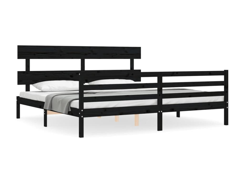 Struttura letto in legno massello nero, 200 x 200 cm